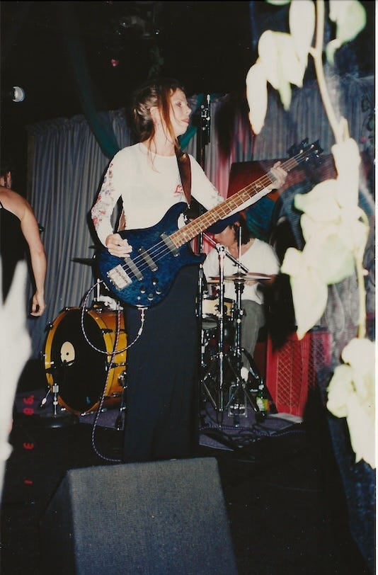Another layer: my future ex-husband was sleeping with our devout lesbian benefactor. I had been in love with him for a year or two, only to be spurned by useless fan-girls who came around after our shows flaunting fake cleavage and lipo. Plus, he had recently broken up with the bass player, Lisa, whose own sapphic tendencies inspired some of the best songs she ever wrote.